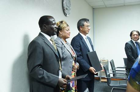 On Friday, 16th January 2015, His Excellency Shuichiro Nishioka, the Ambassador of Japan to Malawi and Mr John Mulagha, Principal for Mulanje Vocational Training Centre and School for the Blind signed a grant contract for the Project for the Construction of a Modern Kitchen at Mulanje Vocational Training Centre and School for the Blind in Mulanje district. The grant signed amounting to US$72, 298 is provided under the Grant Assistance for Grassroots Human Security Projects. The function was held at the Embassy of Japan conference room and graced by Honorable Patricia Kaliati, M.P., Minister of Gender, Children, Disability and Social Welfare.