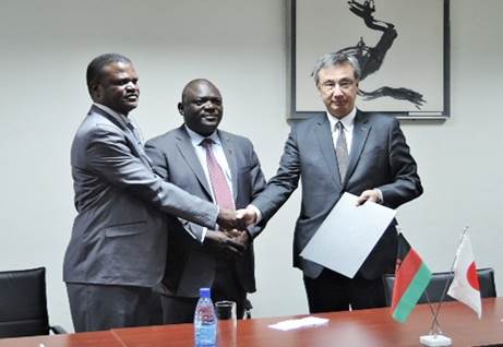 On Monday, 31st August 2015, His Excellency Shuichiro Nishioka, the Ambassador of Japan to Malawi and Mr Pauper Mkandawire Acting Education Division Manager for Northern Education Division signed a contract for the Project for the Construction of Twin Girls’ Hostels at Edingeni Community Day Secondary School in Mzimba District under the Grant Assistance for Grass-roots Human Security Projects. The ceremony was held at the Embassy of Japan and was graced by Hon Vincent Ghambi M.P., Deputy Minister of Education, Science and Technology.