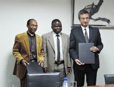 On Monday, 31st August 2015, His Excellency Shuichiro Nishioka, the Ambassador of Japan to Malawi, and Rev Canon Lt. Col. Meke Banda (Rtd), Diocesan Secretary/Administrator, Diocese of Lake Malawi signed a contract for the Project for the Procurement of Recycled Ambulances for St Anne’s Hospital in Nkhotakota District under the Grant Assistance for Grass-roots Human Security Projects. The ceremony was held at the Embassy of Japan and was graced by Hon Dr Peter Kumpalume M.P., Minister of Health.